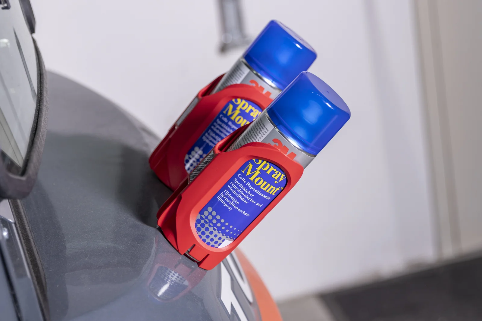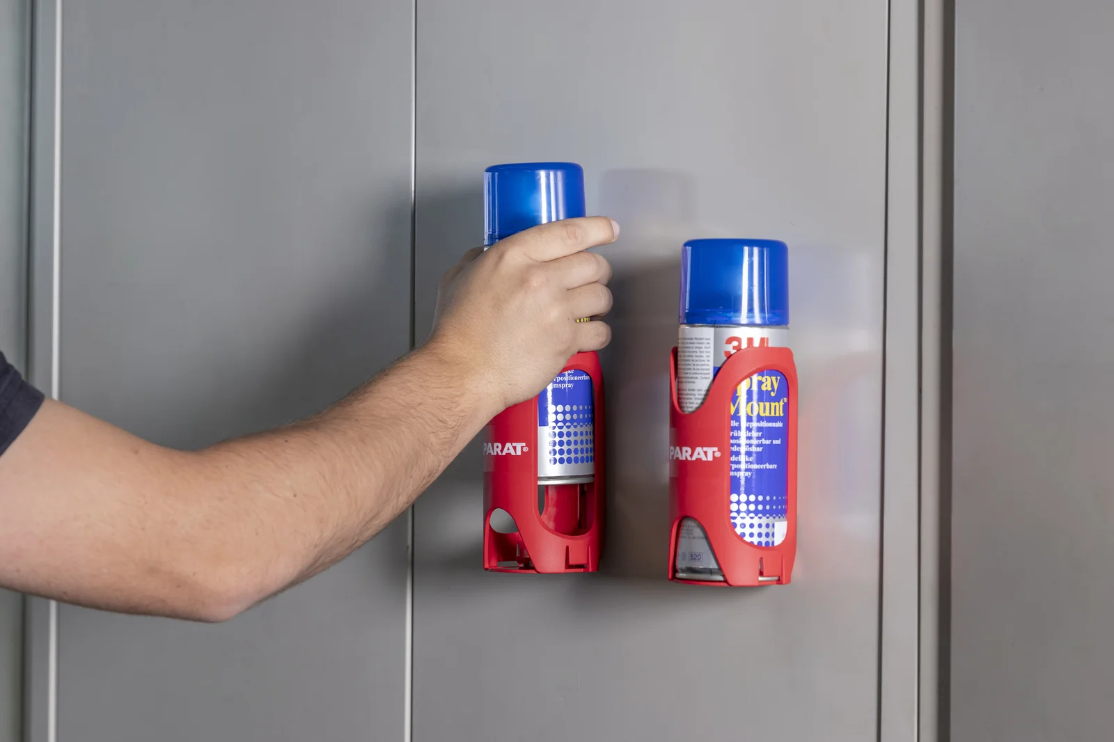 Durch einen Magneten am Dosenboden sowie vertikal wird die Befestigung an jeder magnetischen Oberfläche zum Kinderspiel. Sichern Sie Ihre Spraydosen vertikal und flexibel, egal wo Sie arbeiten.