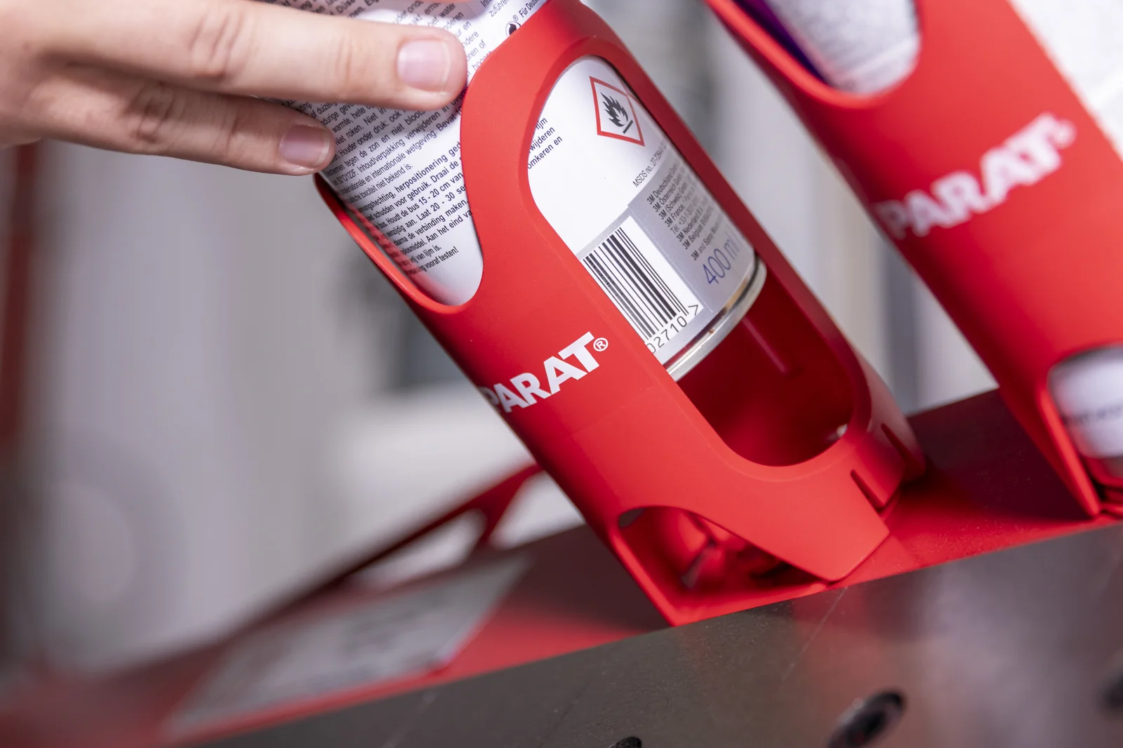 Der PARA-X hält nicht nur dank des starken Bodenmagneten die Spraydosen an beliebigen magnetischen Oberflächen, er lässt zudem die Dose fest in der Halterung einrasten und hält sie an Ort und Stelle. Schluss mit unordentlichen Arbeitsbereichen und umfallenden Spraydosen – verlassen Sie sich auf unsere innovative Lösung für eine effiziente Lagerung Ihrer Arbeitsmaterialien.
