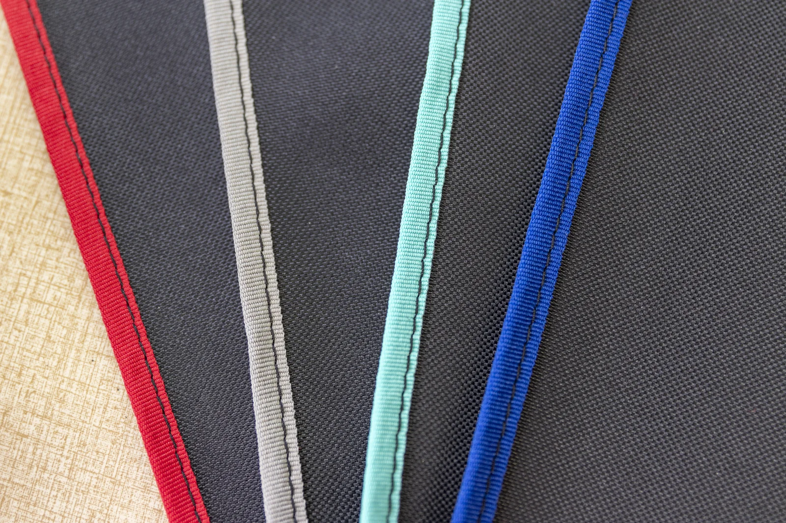 Unsere Auswahl an Stoffen, Einfassbändern und Garnen umfasst zahlreiche Farboptionen, die genau auf Ihre Unternehmensfarben abgestimmt werden können, um Ihr Branding optimal zu unterstützen.