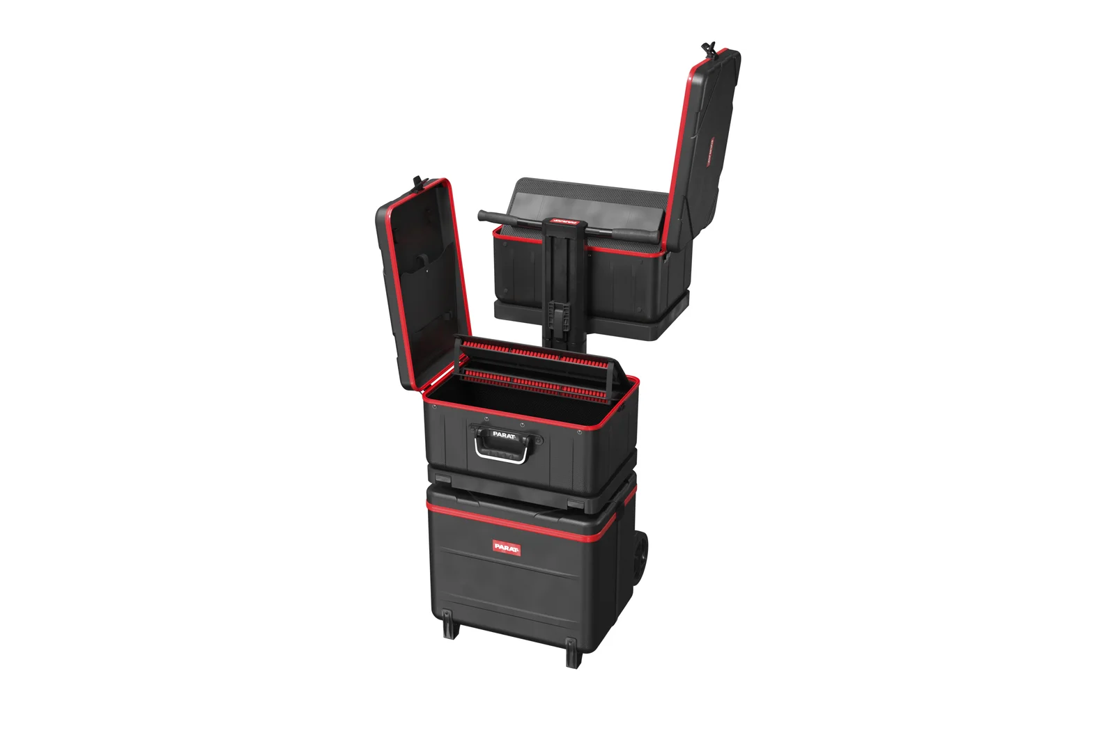 Erweiterung des gesamten Produktportfolios um individuelle Koffer. Vorangestellt der PARADUO. Nicht nur die bewährten PARAT Ordnungssysteme können abgedeckt werden zusätzlich werden Qualitätsschäume wie LD29 und LD45 für Individuelle Einrichtung angeboten. Neben dem PARAT Branding ist auch Co-Branding als auch private Lable möglich.